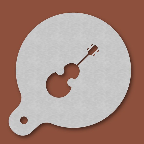 Cappuccino-Schablone Geige, Außendurchmesser 120 mm, Motivdurchmesser ca. 70 mm, aus Edelstahl mit Handgriff und integriertem Aufhänger, spülmaschinengeeignet, Lieferung in Verkaufsverpackung mit Kartoneinlage und Bedienungsanleitung