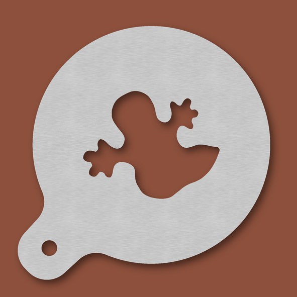 Cappuccino-Schablone Gespenst, Außendurchmesser 120 mm, Motivdurchmesser ca. 70 mm, aus Edelstahl mit Handgriff und integriertem Aufhänger, spülmaschinengeeignet, Lieferung in Verkaufsverpackung mit Kartoneinlage und Bedienungsanleitung