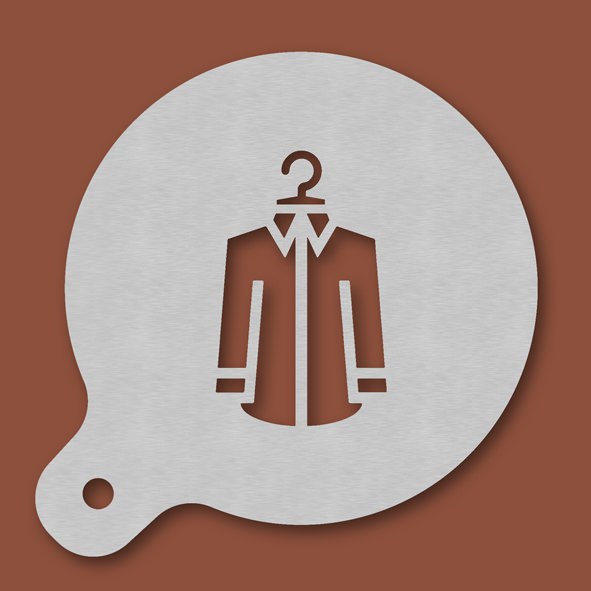 Cappuccino-Schablone Hemd, Außendurchmesser 120 mm, Motivdurchmesser ca. 70 mm, aus Edelstahl mit Handgriff und integriertem Aufhänger, spülmaschinengeeignet, Lieferung in Verkaufsverpackung mit Kartoneinlage und Bedienungsanleitung