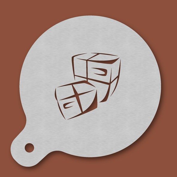 Cappuccino-Schablone Pakete, Außendurchmesser 120 mm, Motivdurchmesser ca. 70 mm, aus Edelstahl mit Handgriff und integriertem Aufhänger, spülmaschinengeeignet, Lieferung in Verkaufsverpackung mit Kartoneinlage und Bedienungsanleitung