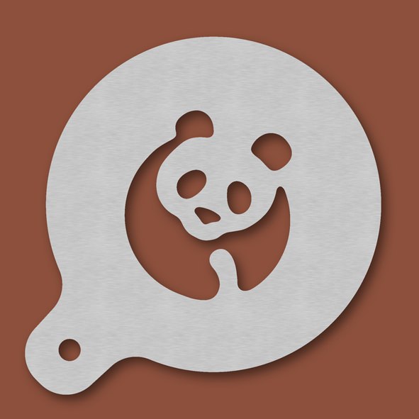 Cappuccino-Schablone Panda, Außendurchmesser 120 mm, Motivdurchmesser ca. 70 mm, aus Edelstahl mit Handgriff und integriertem Aufhänger, spülmaschinengeeignet, Lieferung in Verkaufsverpackung mit Kartoneinlage und Bedienungsanleitung