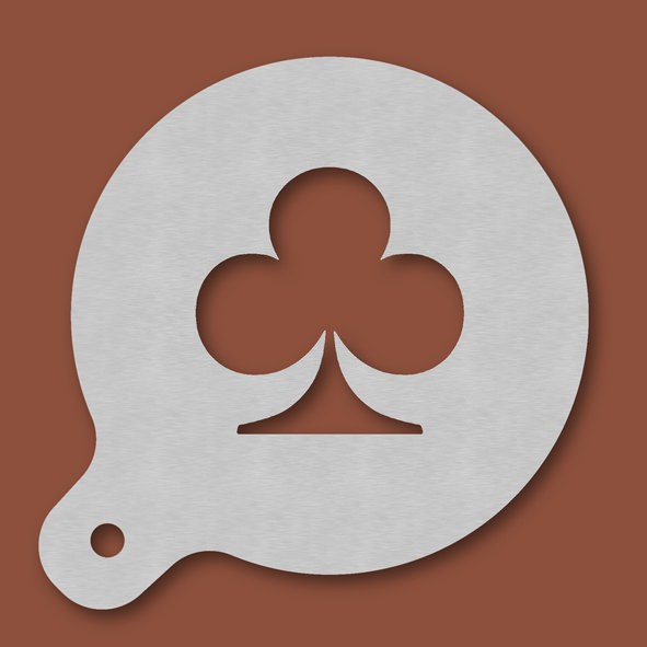 Cappuccino-Schablone Spielkarte Kreuz, Außendurchmesser 120 mm, Motivdurchmesser ca. 70 mm, aus Edelstahl mit Handgriff und integriertem Aufhänger, spülmaschinengeeignet, Lieferung in Verkaufsverpackung mit Kartoneinlage und Bedienungsanleitung