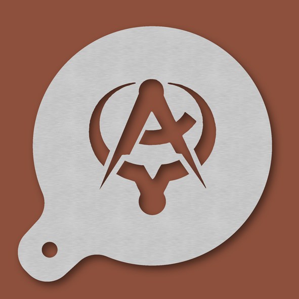 Cappuccino-Schablone Steinmetz, Außendurchmesser 120 mm, Motivdurchmesser ca. 70 mm, aus Edelstahl mit Handgriff und integriertem Aufhänger, spülmaschinengeeignet, Lieferung in Verkaufsverpackung mit Kartoneinlage und Bedienungsanleitung
