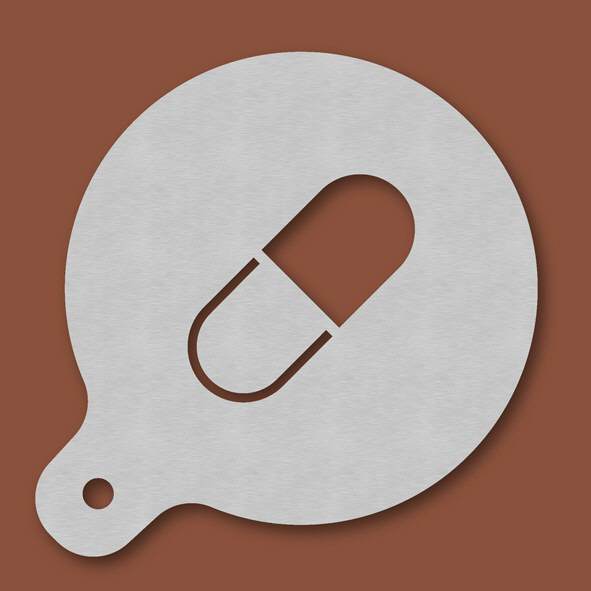 Cappuccino-Schablone Tablette, Außendurchmesser 120 mm, Motivdurchmesser ca. 70 mm, aus Edelstahl mit Handgriff und integriertem Aufhänger, spülmaschinengeeignet, Lieferung in Verkaufsverpackung mit Kartoneinlage und Bedienungsanleitung
