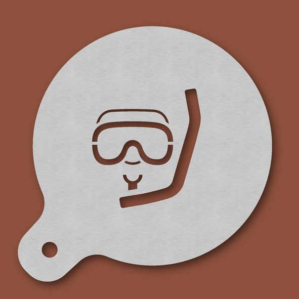 Cappuccino-Schablone Taucher - Schnorchler, Außendurchmesser 120 mm, Motivdurchmesser ca. 70 mm, aus Edelstahl mit Handgriff und integriertem Aufhänger, spülmaschinengeeignet, Lieferung in Verkaufsverpackung mit Kartoneinlage und Bedienungsanleitung