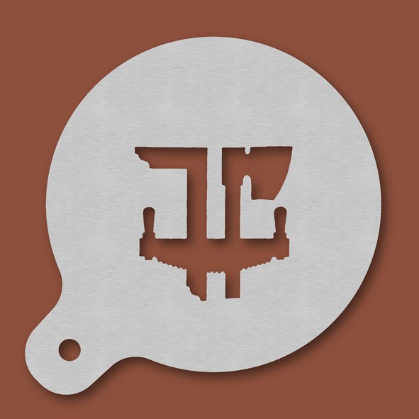 Cappuccino-Schablone Zimmermann, Außendurchmesser 120 mm, Motivdurchmesser ca. 70 mm, aus Edelstahl mit Handgriff und integriertem Aufhänger, spülmaschinengeeignet, Lieferung in Verkaufsverpackung mit Kartoneinlage und Bedienungsanleitung