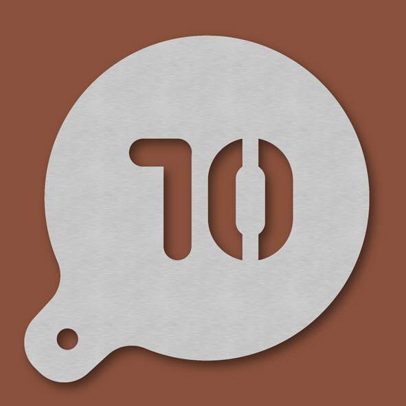 Cappuccino-Schablone Zahl 10, Außendurchmesser 120 mm, Schrifthöhe ca. 45 mm, aus Edelstahl mit Handgriff und integriertem Aufhänger, spülmaschinengeeignet, Lieferung in Verkaufsverpackung mit Kartone ...