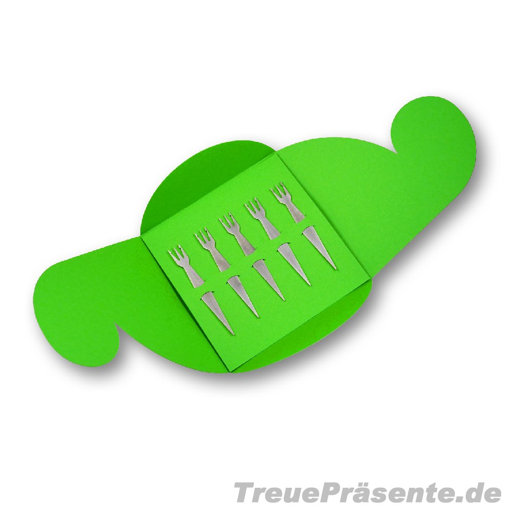 Geschenkset fünf Pommesgabeln/Käsespieße 05 aus Edelstahl, Geschenkverpackung in Standard-Farbe nach Wahl