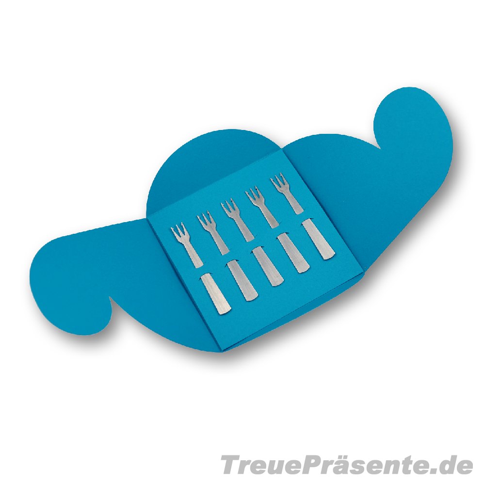 Geschenkset fünf Pommesgabeln/Käsespieße 04 aus Edelstahl, Geschenkverpackung in Standard-Farbe nach Wahl