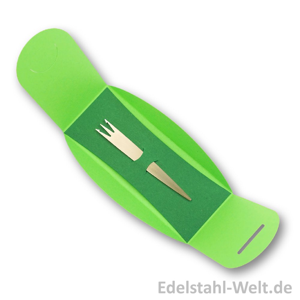 Pommesgabel/Käsespieß 02 aus Edelstahl inklusive Gravur (z. B. Logo, Website o. ä.), Geschenkverpackung in Standard-Farbe nach Wahl