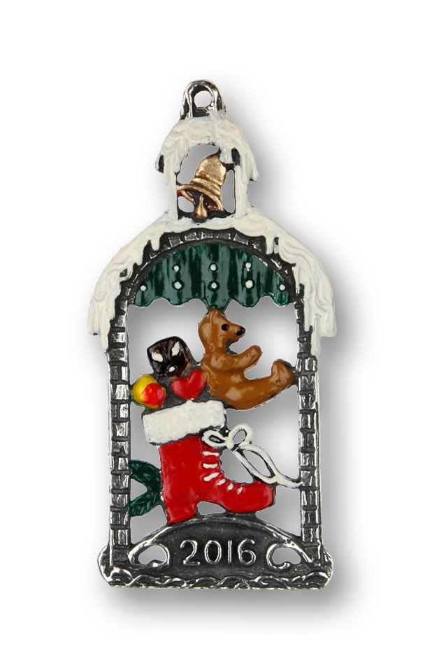 Zinnfigur Weihnachtsmotiv 2016 Weihnachtsstiefel, doppelseitig, H: 6,0 cm
