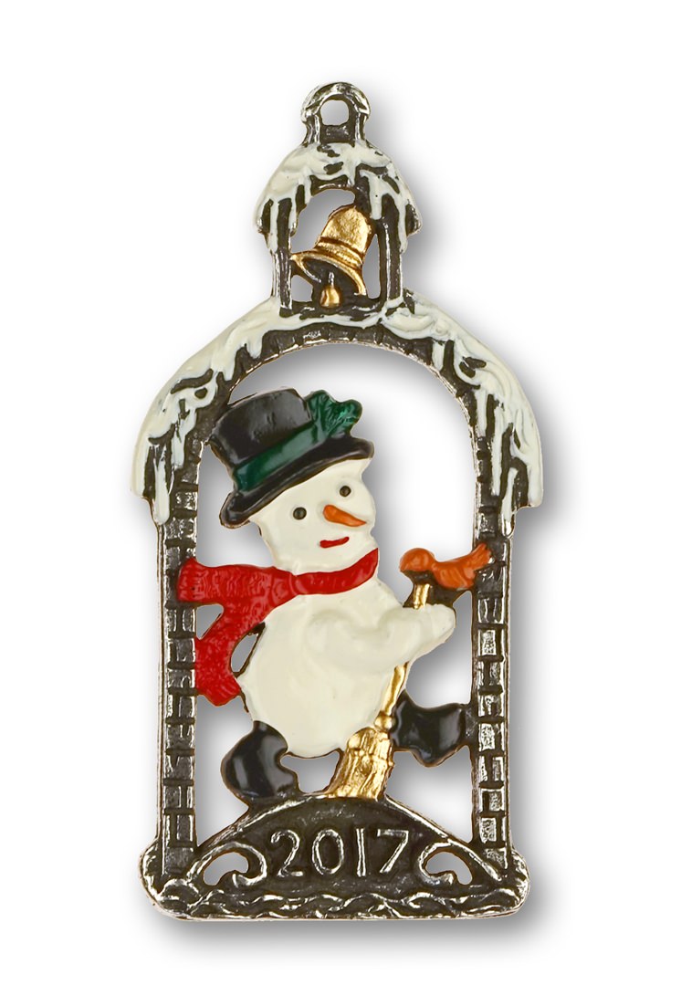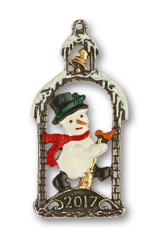Zinnfigur Weihnachtsmotiv 2017 Schneemann mit Besen, doppelseitig, H: 6,0 cm