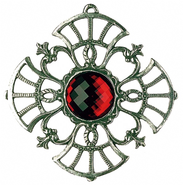 Ornament-Stern antik Nr. 3 mit Schmuckstein rot, Zinn 93%, H: 8,5 cm