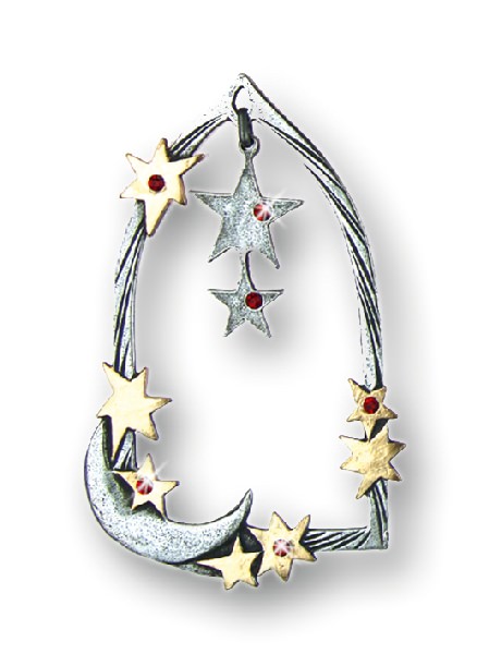 Zinnfigur Bogen mit 7 Steinen rot und beweglichem Innenteil Sterne mit 4 Steinen rot, doppelseitig, H: 8,0 cm, in Geschenkverpackung