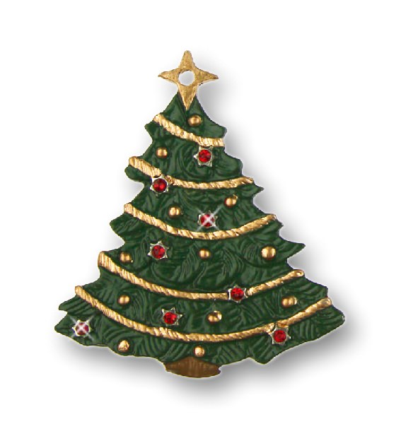 Zinnfigur Christbaum mit 16 Steinen rot, doppelseitig, H: 6,5 cm, in Geschenkverpackung