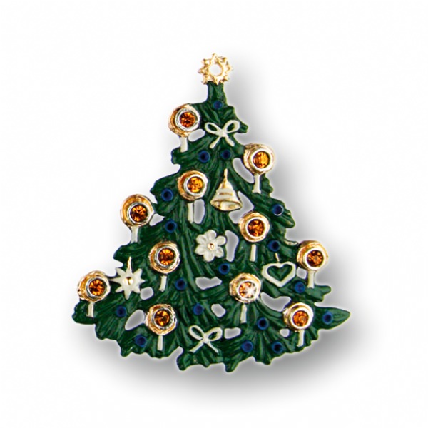 Zinnfigur Christbaum mit 22 Steinen gelb, doppelseitig, H: 7,0 cm, in Geschenkverpackung