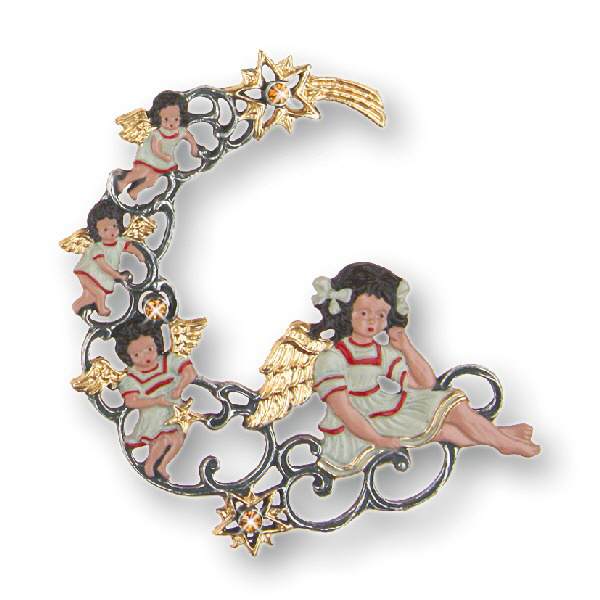 Zinnfigur Engel mit kleinen Engeln und 6 Steinen gelb, doppelseitig, H: 7,5 cm, in Geschenkverpackung