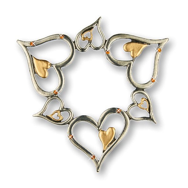 Zinnfigur Ornament-Herz mit 9 Steinen gelb, einseitig, H: 10,0 cm, in Geschenkverpackung