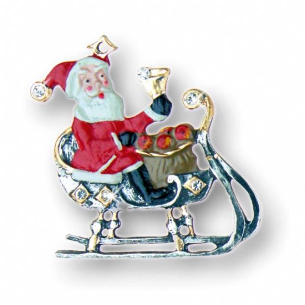 Zinnfigur Weihnachtsmann mit Glocke auf Schlitten und 12 Steinen kristall, doppelseitig, H: 5,0 cm, in Geschenkverpackung