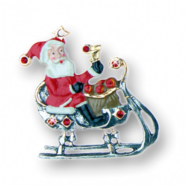 Zinnfigur Weihnachtsmann mit Glocke auf Schlitten und 12 Steinen rot, doppelseitig, H: 5,0 cm, in Geschenkverpackung