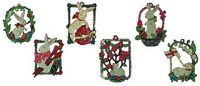 Sortiment "Osterhasen & Lamm" Zinnfiguren doppelseitig (Inhalt: 18 Stück, je 3 Stück pro Motiv)