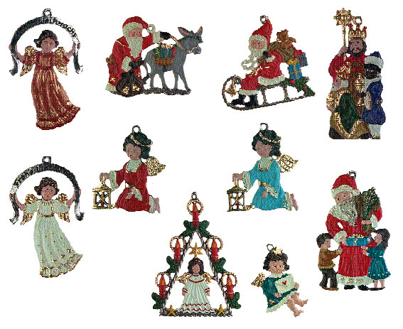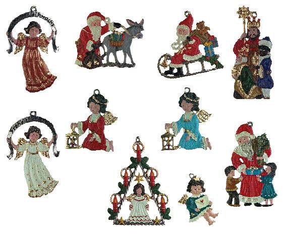 Sortiment "Weihnachtszeit" Zinnfiguren doppelseitig (Inhalt: 30 Stück, je 3 Stück pro Motiv)