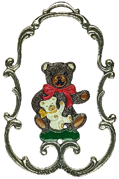 Zinnfigur Bär mit Kind links im Rahmen, H: 11,5 cm