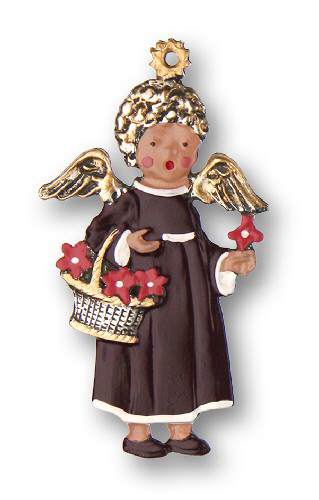 Zinnfigur Engel mit Blumenkorb doppelseitig, H: 6,0 cm