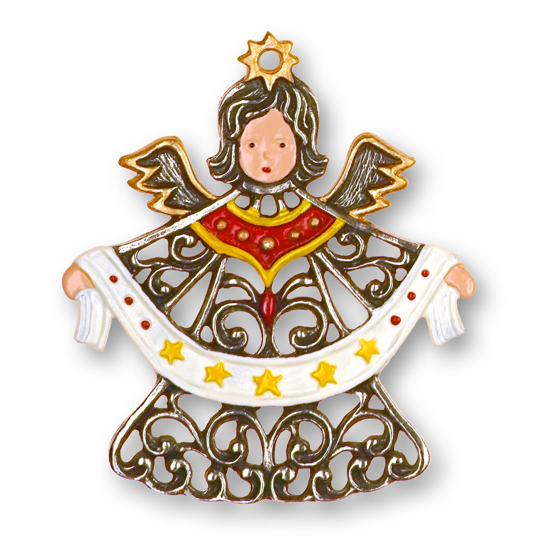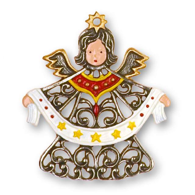 Zinnfigur Filigranbehang Engel mit Band, H: 6,0 cm