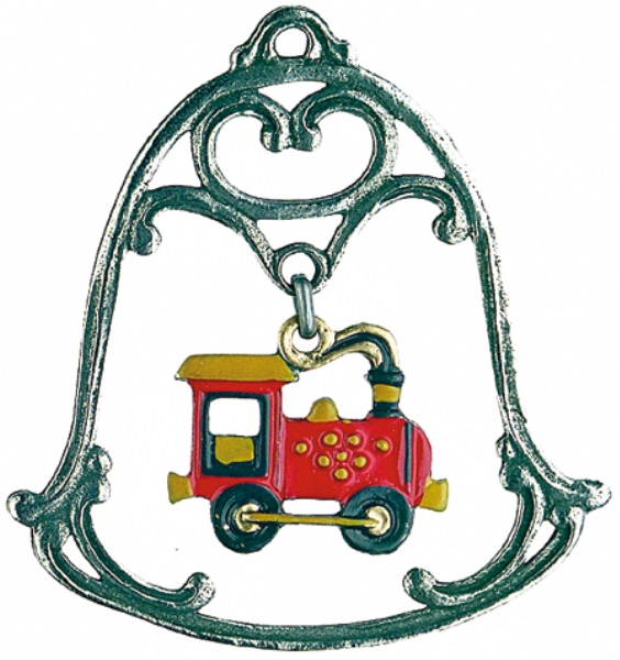 Zinnfigur Glocke mit beweglichem Innenteil Lokomotive, H: 6,0 cm