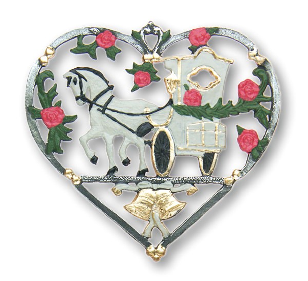 Zinnfigur Hochzeitskutsche im Herz doppelseitig, H: 7,0 cm