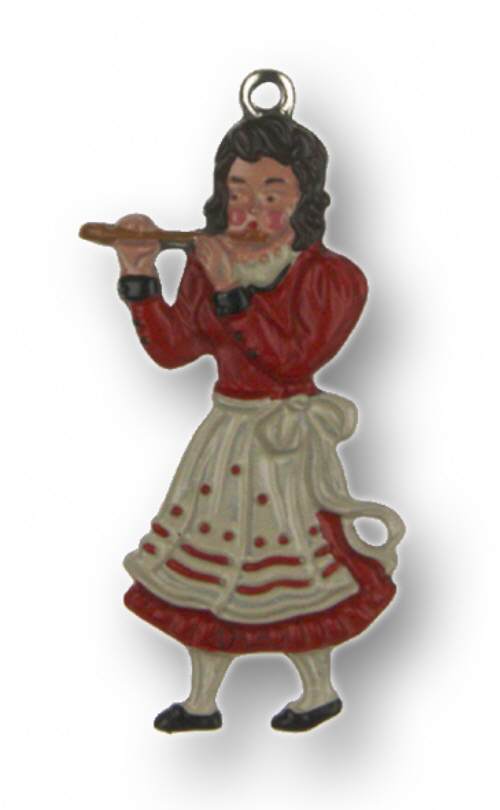 Zinnfigur Musikantin mit Flöte doppelseitig, H: 5,5 cm