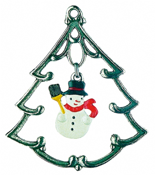 Zinnfigur Tannenbaum mit beweglichem Innenteil Schneemann, H: 6,5 cm