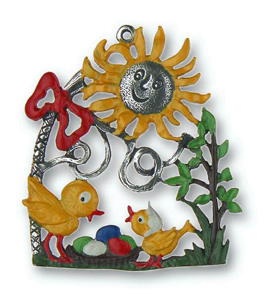 Zinnfigur Vogelnest mit Sonne, doppelseitig, H: 5,5 cm