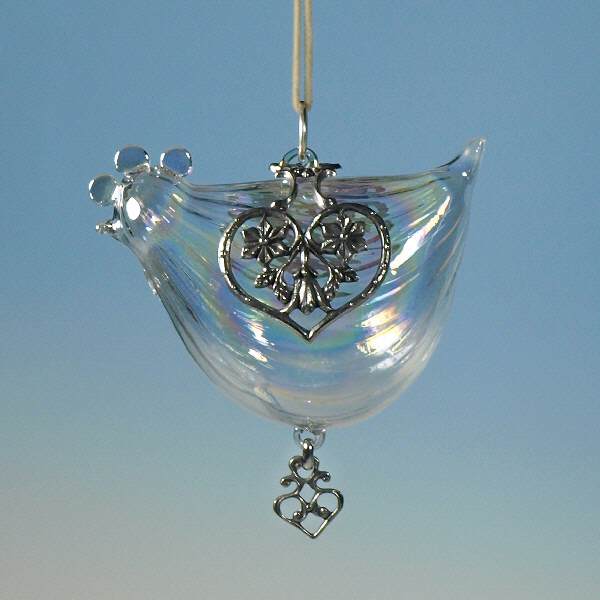 Glas-Henne mit Zinndekor antik, LxBxH: ca. 9,7 x 5,3 x 7,7 cm