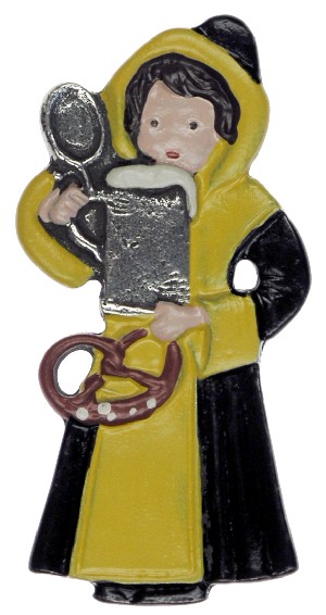 Magnet mit Zinnfigur Münchner Kindl mit Brezel, H: 4,5 cm