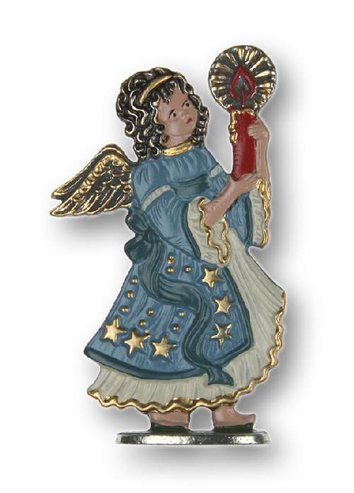 Zinnfigur Engel blau mit 1 Kerze zum Stellen doppelseitig, H: 7,5 cm