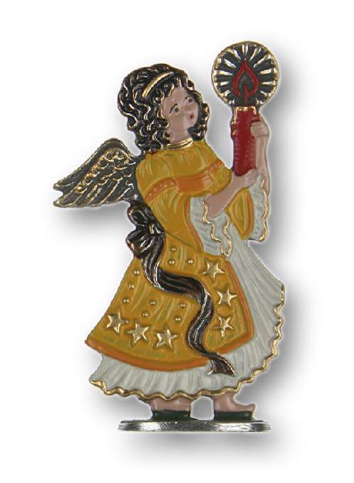 Zinnfigur Engel gelb mit 1 Kerze zum Stellen doppelseitig, H: 7,5 cm