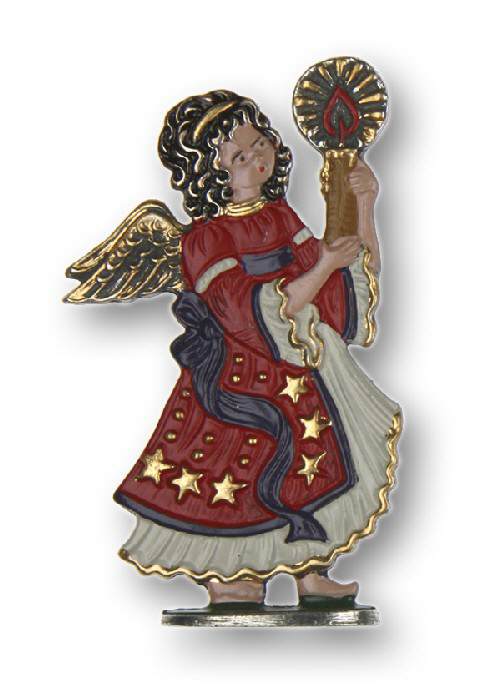 Zinnfigur Engel rot mit 1 Kerze zum Stellen doppelseitig, H: 7,5 cm