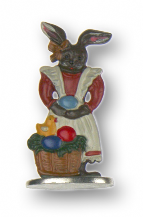 Zinnfigur Hasenfrau braun mit Küken zum Stellen doppelseitig, H: 5,5 cm