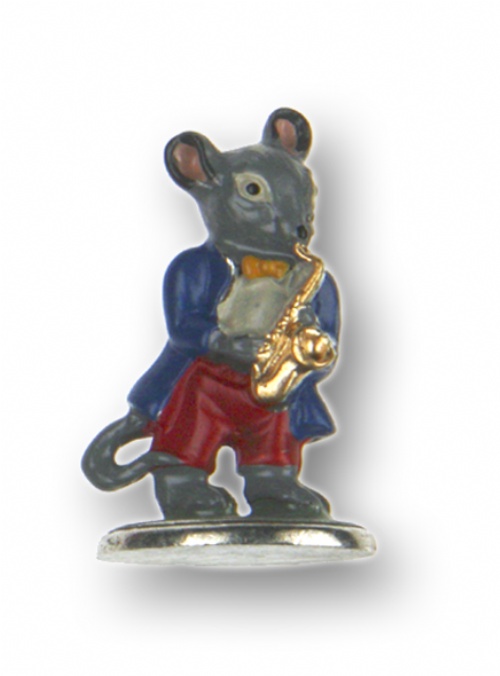 Zinnfigur Maus mit Saxophon zum Stellen doppelseitig, H: 3,5 cm