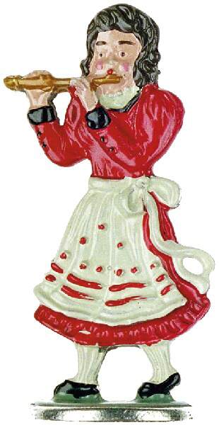 Zinnfigur Musikantin mit Flöte zum Stellen, H: 5,5 cm