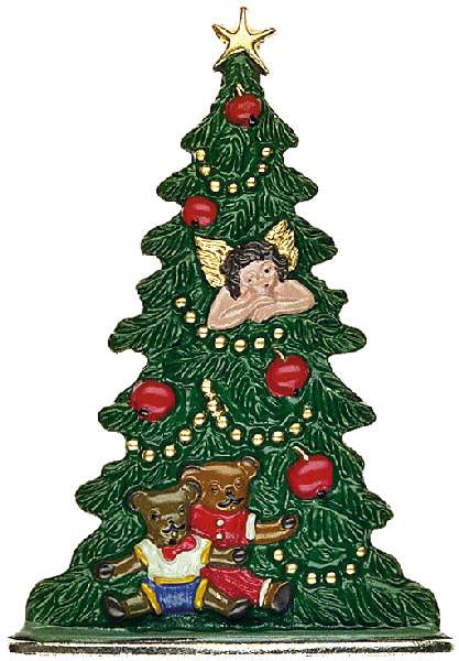 Zinnfigur Weihnachtsbaum mit Teddy zum Stellen, H: 9,0 cm