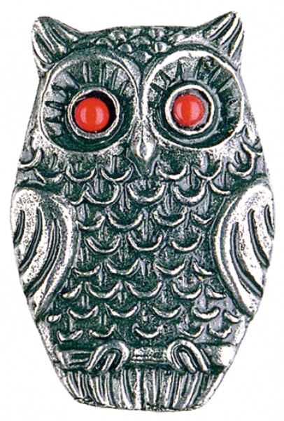 Anstecker Eule mit Augen antik, Zinn 93%, H: 3,5 cm