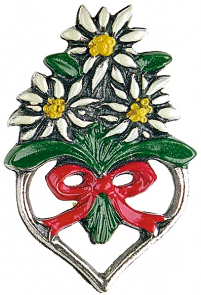 Anstecker Herz Edelweißstrauß, Zinn 93%, H: 4,0 cm