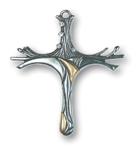 Zinnfigur Kreuz modern 4 Steine kristall, H: 7,5 cm