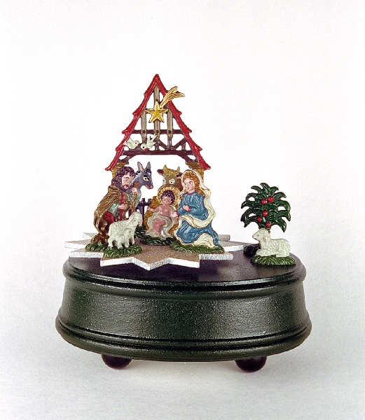 Musikspiel Krippe klein auf Drehstern (Melodie: "Stille Nacht"), H: 14,5 cm