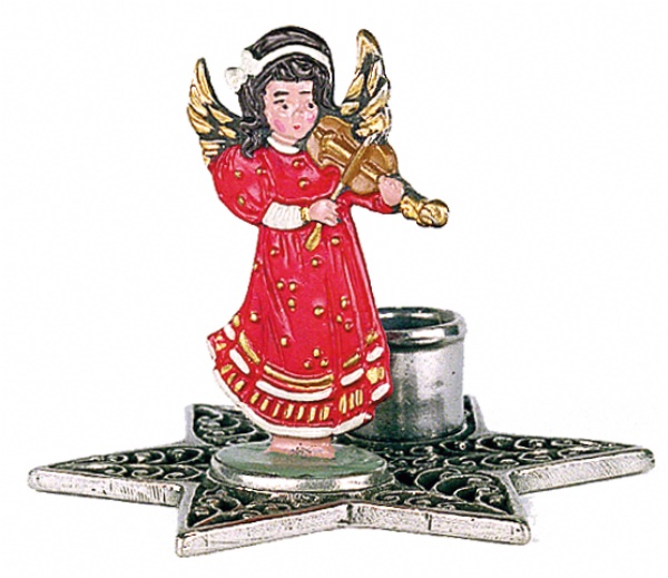 Leuchter Filigranstern Engel mit Geige, Zinn 93%, H: 5,5 cm