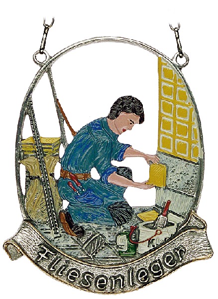 Sie sind hier: Werbemittel123.de » Werbemittel aus Zinn » Zinnbilder Zinnbild Fliesenleger oval Zinnbild Fliesenleger oval, H: 11,0 cm