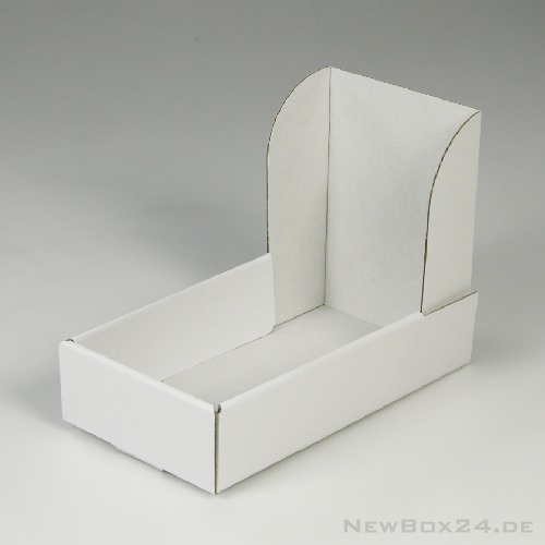 Display 654 in Größe 01 - 215 x 110 x 50 mm (Innenmaße - passend für DIN Lang), Wellkarton glatt in Standardfarbe weiß (Farben gegen Aufpreis möglich), Lieferung ungefaltet